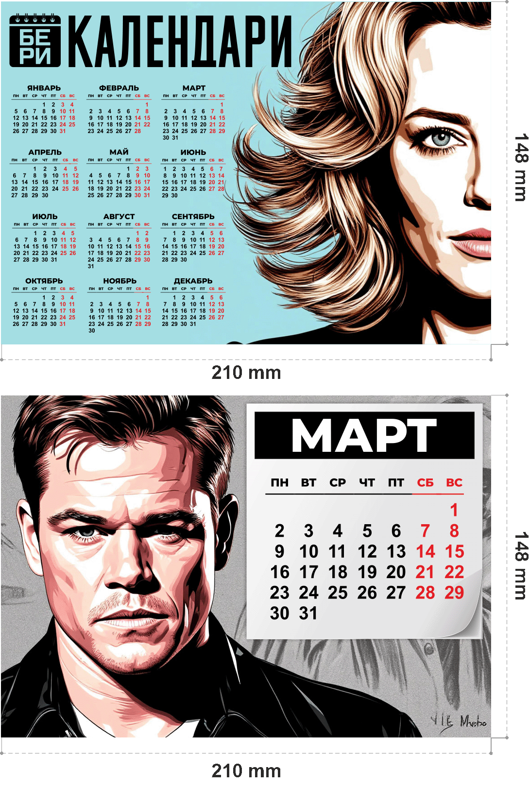 Календари на холодильник (и не только) любого формата